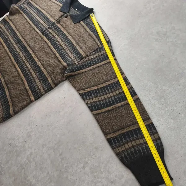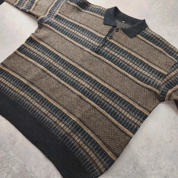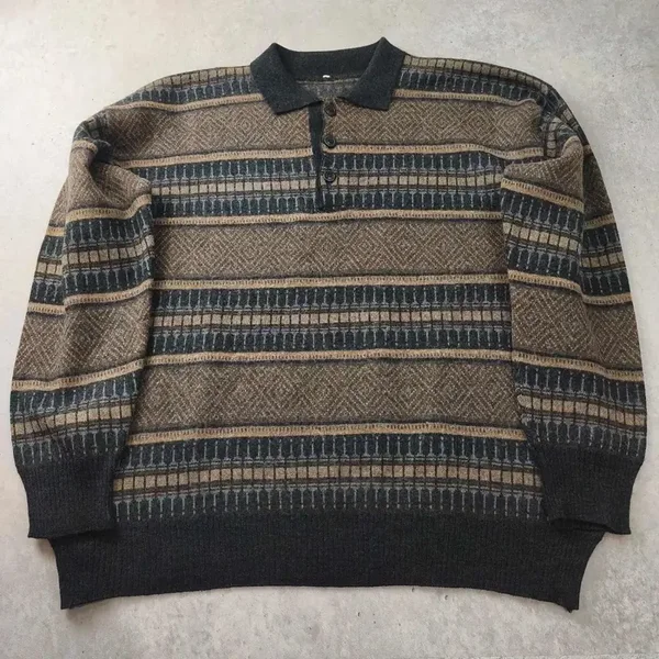 Pull vintage à manches longues avec col polo et patte de boutonnage (3 boutons).