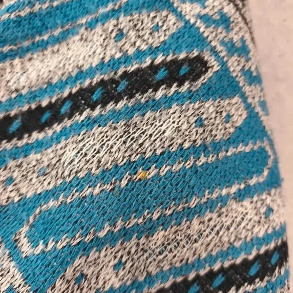 Le pull est en bon état général compte tenu de son âge, mais présente quelques signes d'usure typiques des vêtements vintage : Boulochage : Quelques bouloches présentes