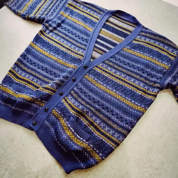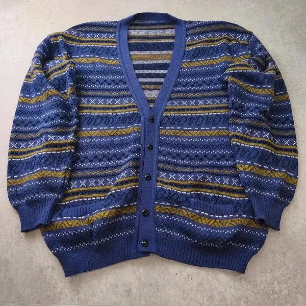 Cardigan Vintage à Motifs Géométriques – Taille XL