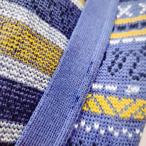 Motifs : Bandes horizontales géométriques et détails "Fair Isle".