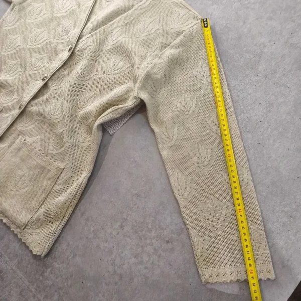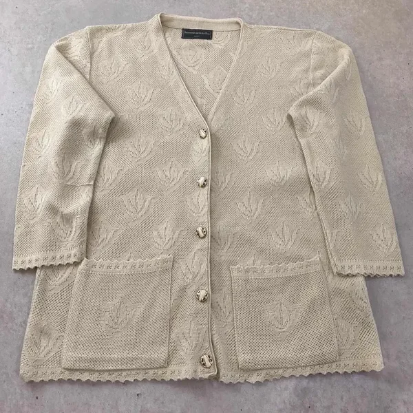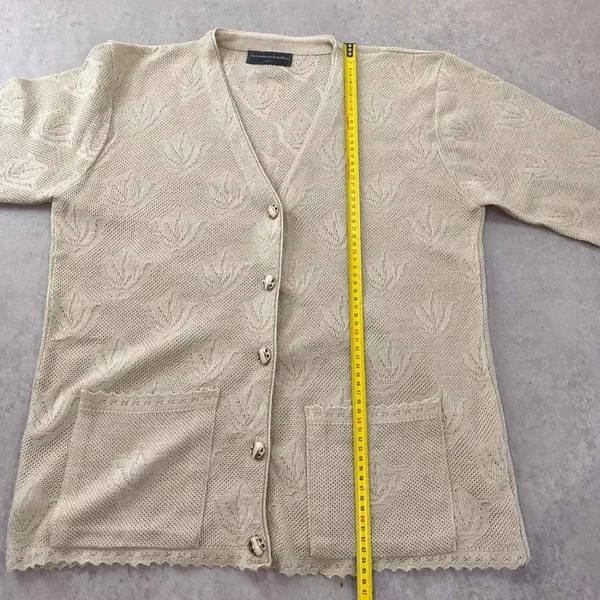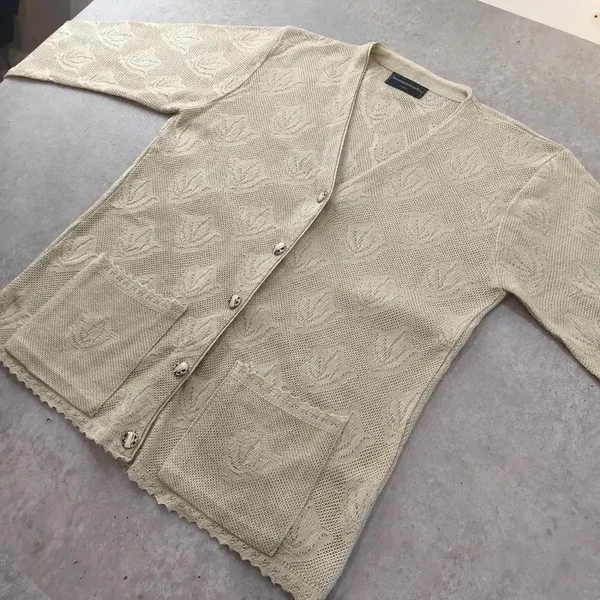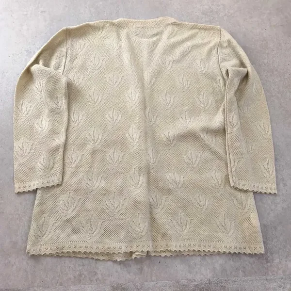 Gilet Cardigan Vintage Maille Ajourée – Fabriqué en France Look Chic Taille L/XL