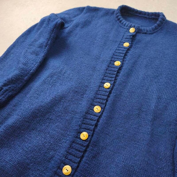 Gilet Long Vintage Marine – Mailles Douces L/XL