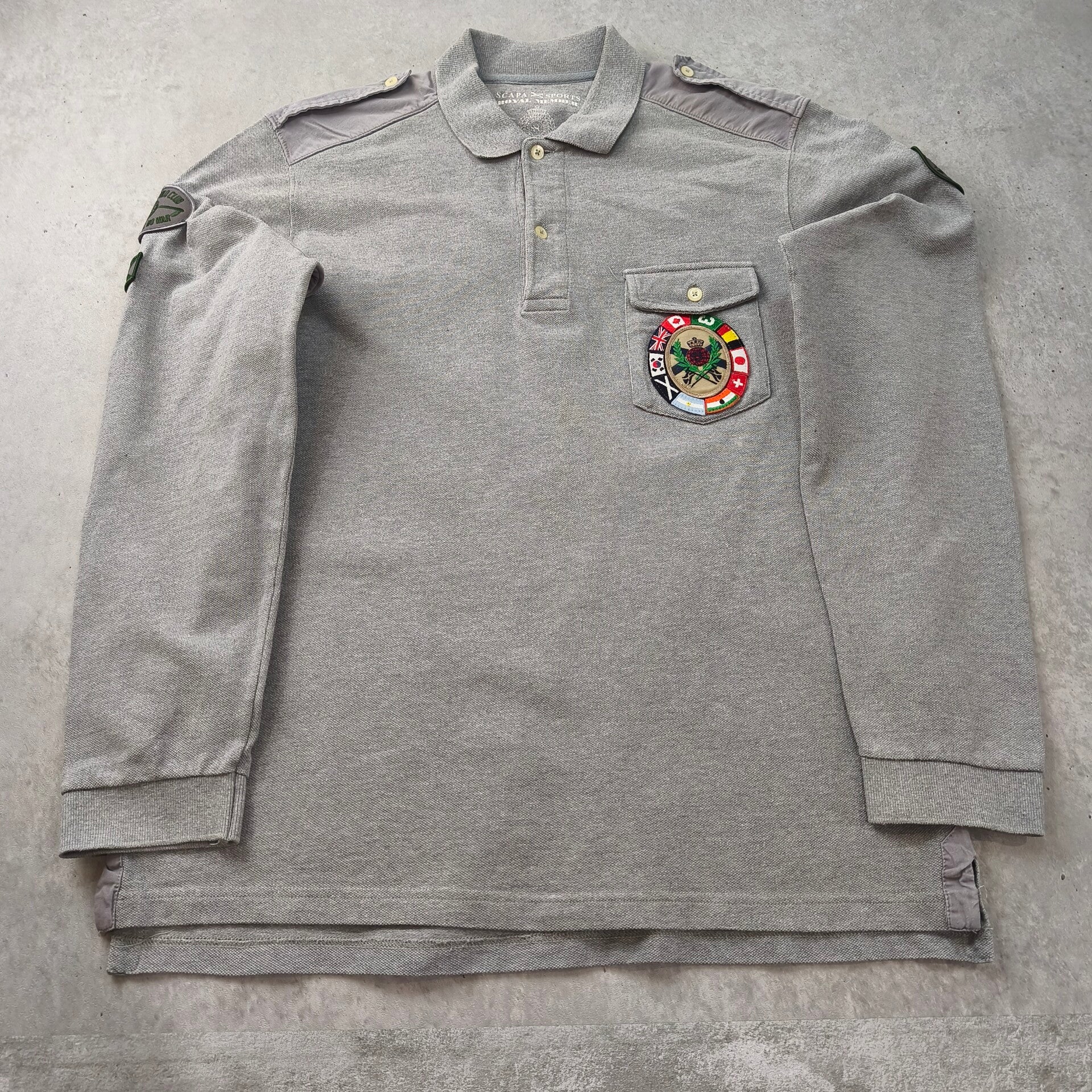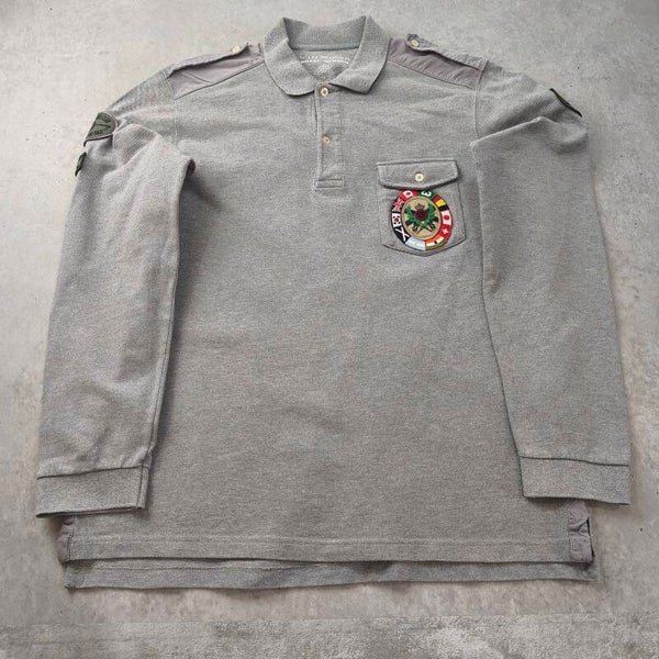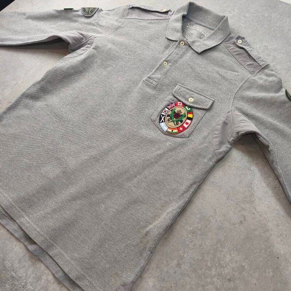 Magnifique polo à manches longues de la marque Scapa Sports, ligne "Royal Member". Un modèle robuste et stylé avec de superbes détails, notamment le patch "Guerrilla Polo Club" et un blason multi-drapeaux sur la poche poitrine.