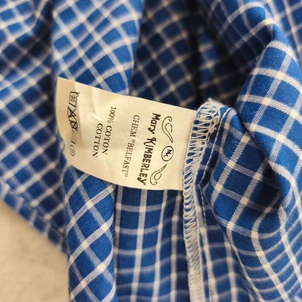 Chemisier Vintage Mary Kiberley Carreaux Bleu Blanc Coton Taille 42 / 44