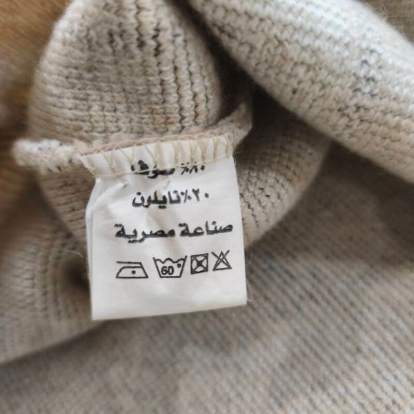 Détails : Col en V, finitions bords-côtes aux poignets et à la taille. Fabriqué en Égypte.