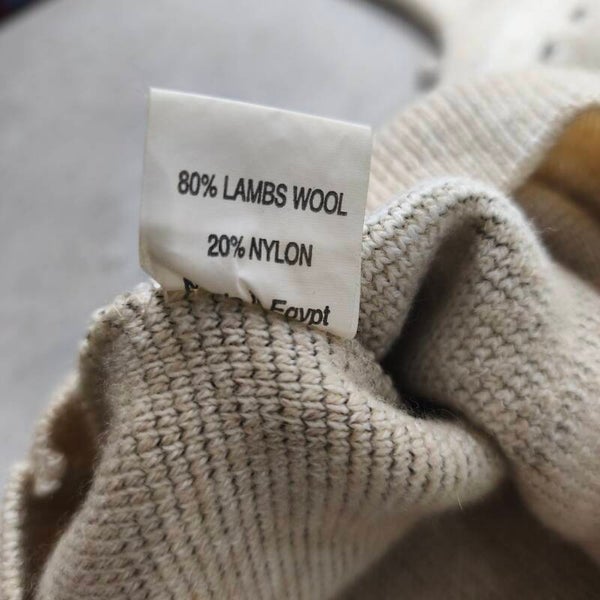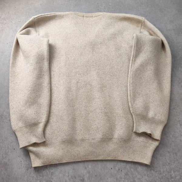 Pull Vintage Col V Beige Chiné 80% Laine Lambswool Taille L