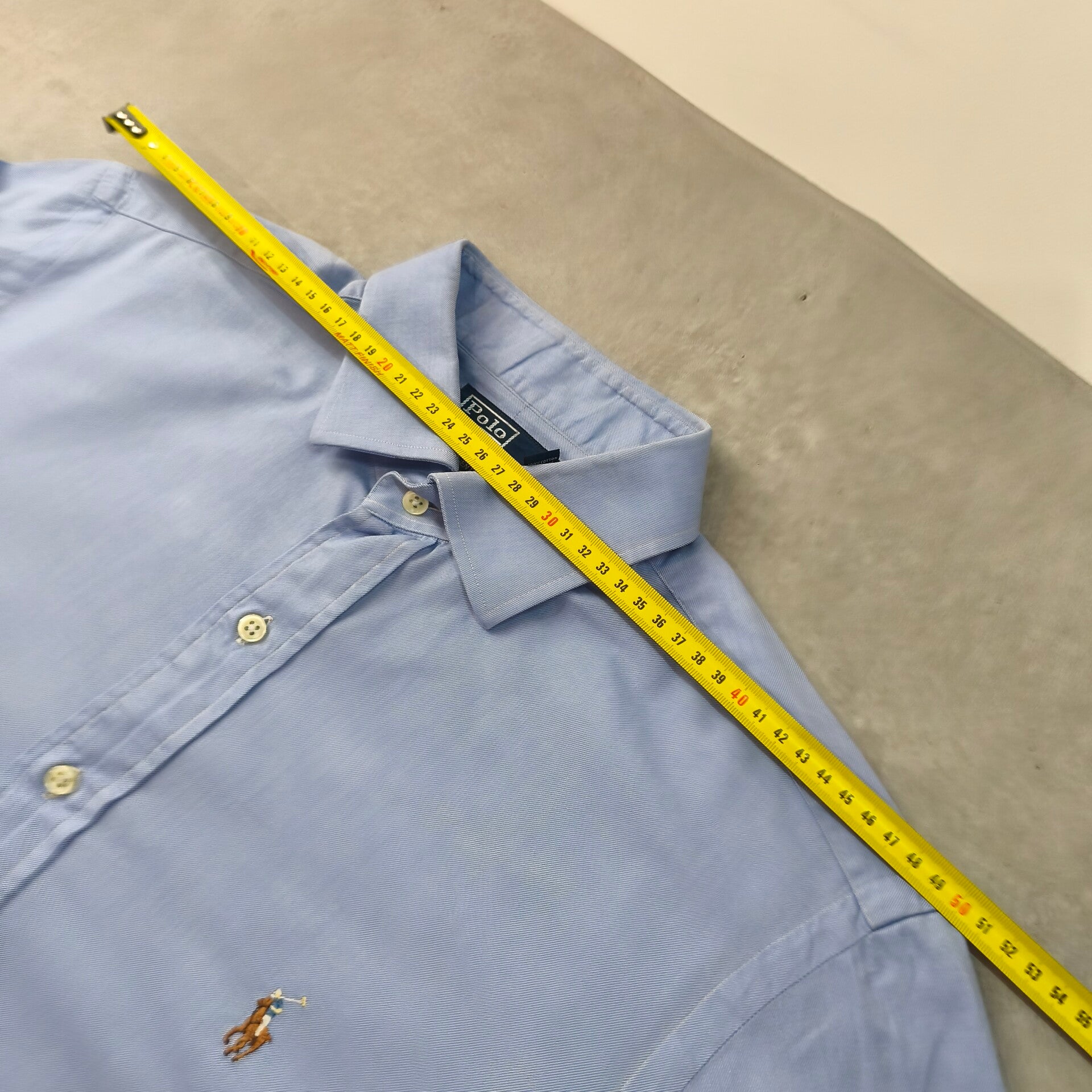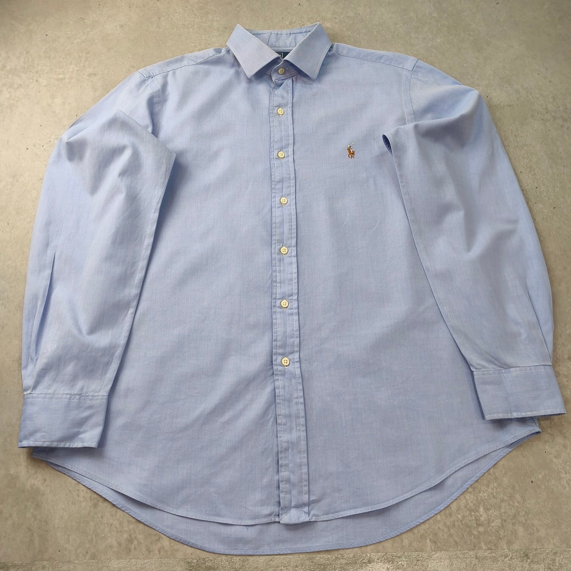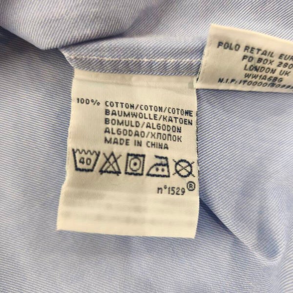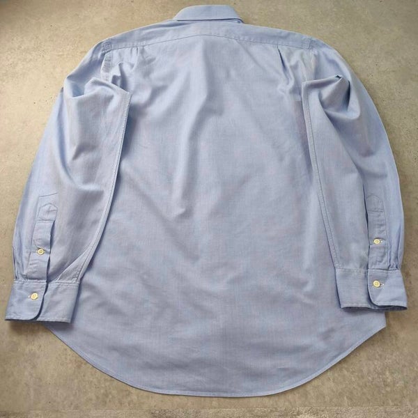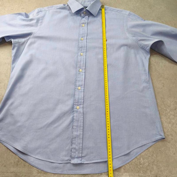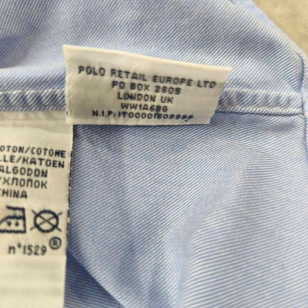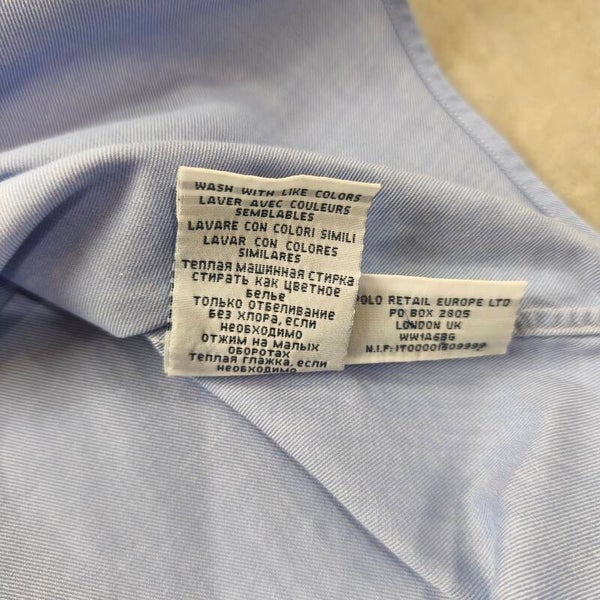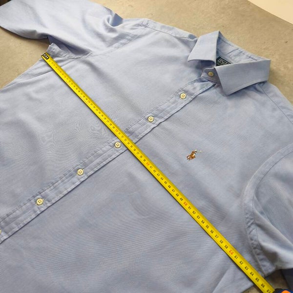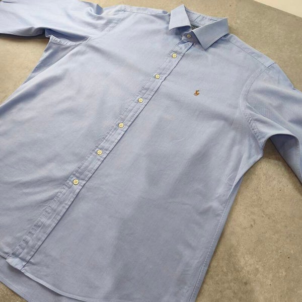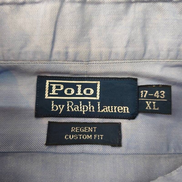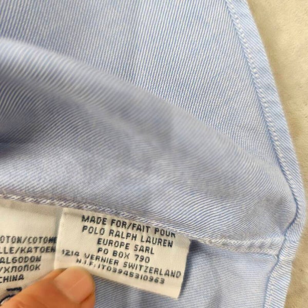 Superbe chemise Polo Ralph Lauren authentique, modèle "Regent Custom Fit". La couleur est un bleu ciel lumineux et élégant, parfait pour une tenue business ou décontractée chic.